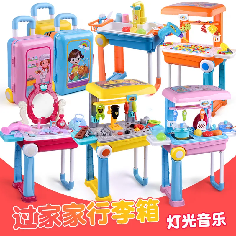 BEST Children Model Play House Kitchen Toy Stowable Electric Light Sound Play House Luggage Case Suit
