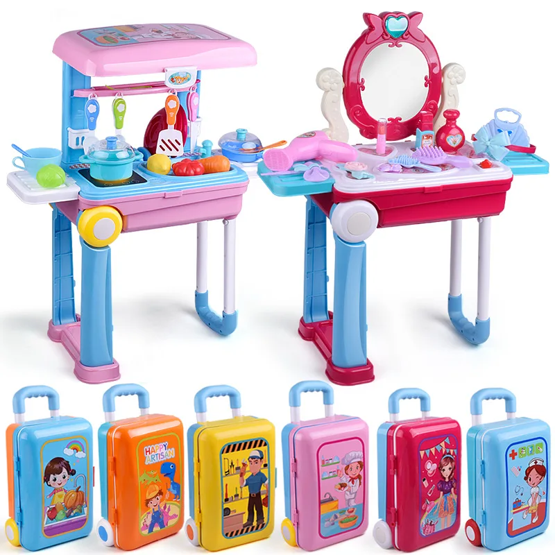 Children Model Play House Kitchen Toy Stowable Electric Light Sound Play House Luggage Case Suit