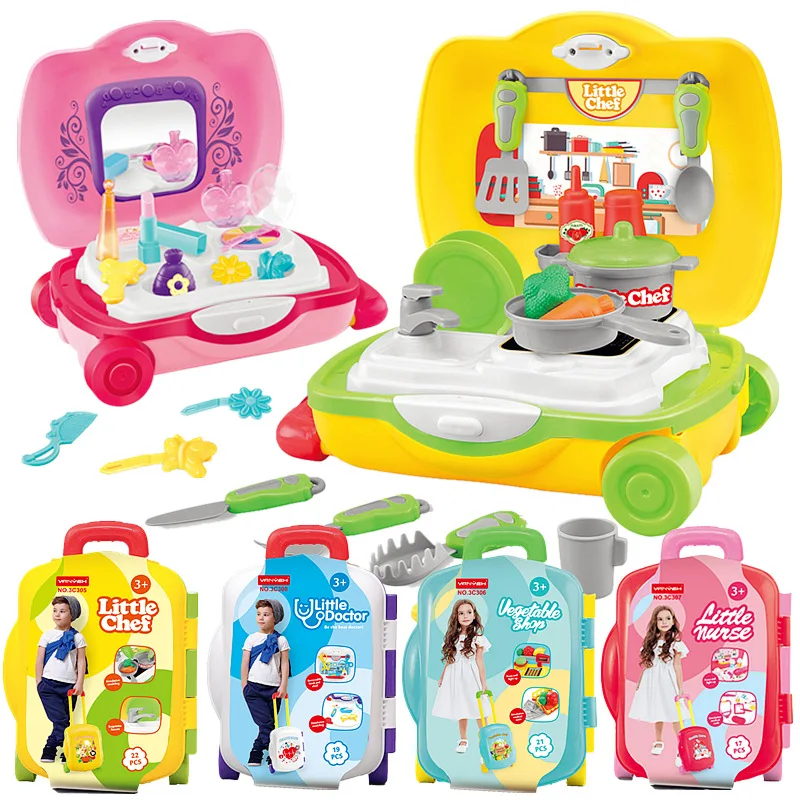 BEST SELLER Children Model Kitchen Tableware & Vegetable Supermarket Makeup Accessories Doctor Set Hand Luggage