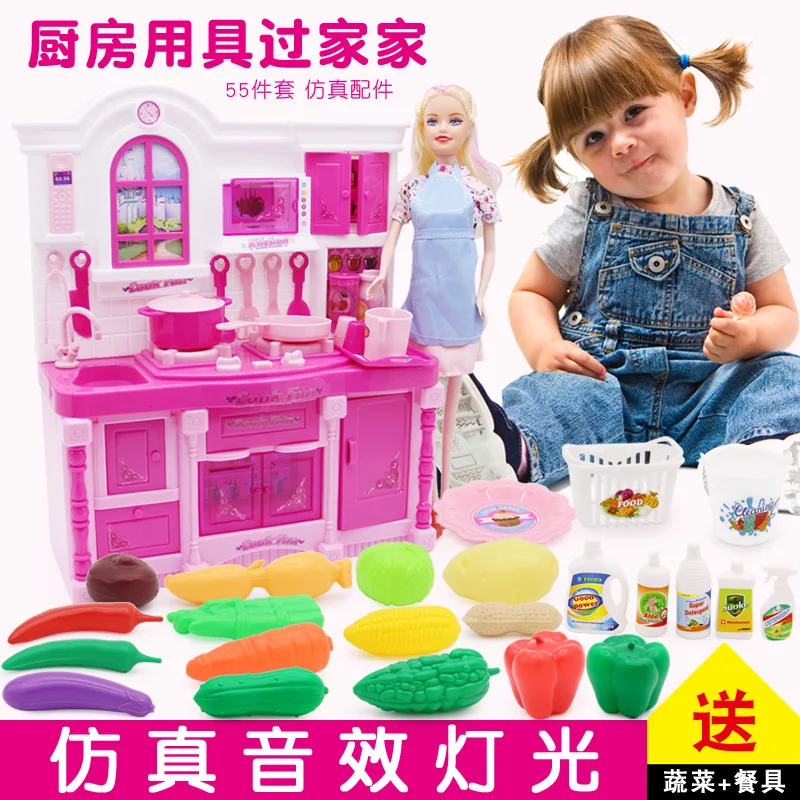 Review Top Model Kitchen Set Children GIRL'S Toy Kitchen Tableware Doll Combo Children GIRL'S Will Cooking Toy