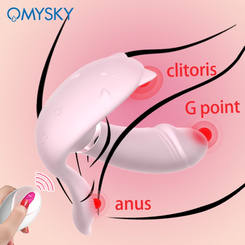 Omysky Heating Wearable Butterfly Dildo Vibrator Vagina Clitoris Stimulator Remote Control Vibrator