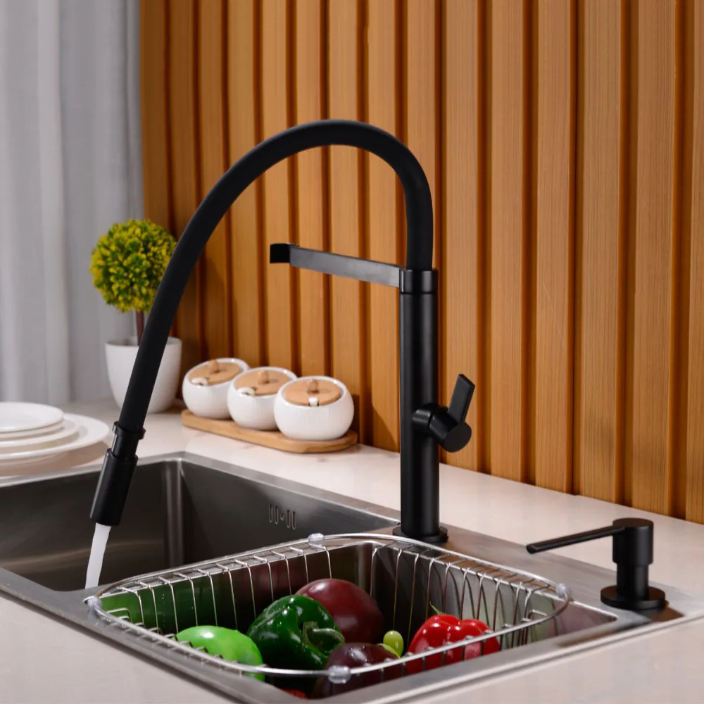 Solid Brass Kitchen Faucet Pull Out Down Sink Mixer Tap 360 Swivel Spout Hot and Cold Water Torneir