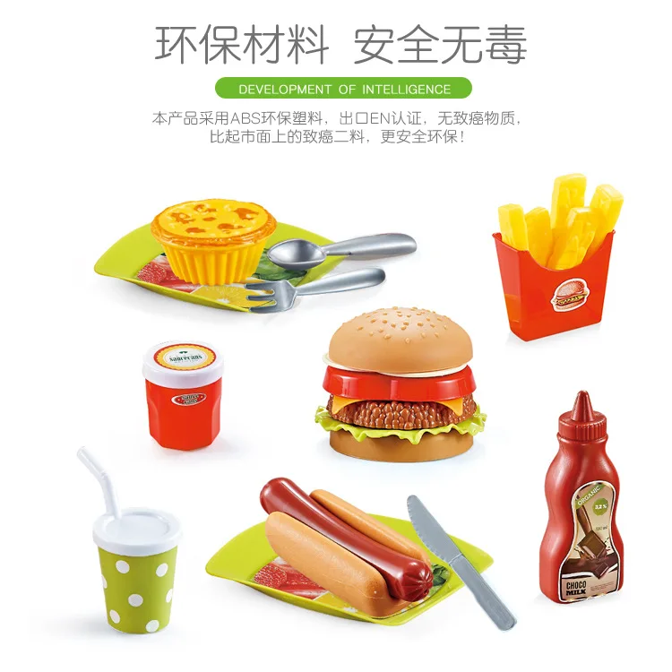 HIGH QUALITY Children'S Educational Play House Play kitchens Gourmet Simulated Burger French Fries Hot Dog Bever