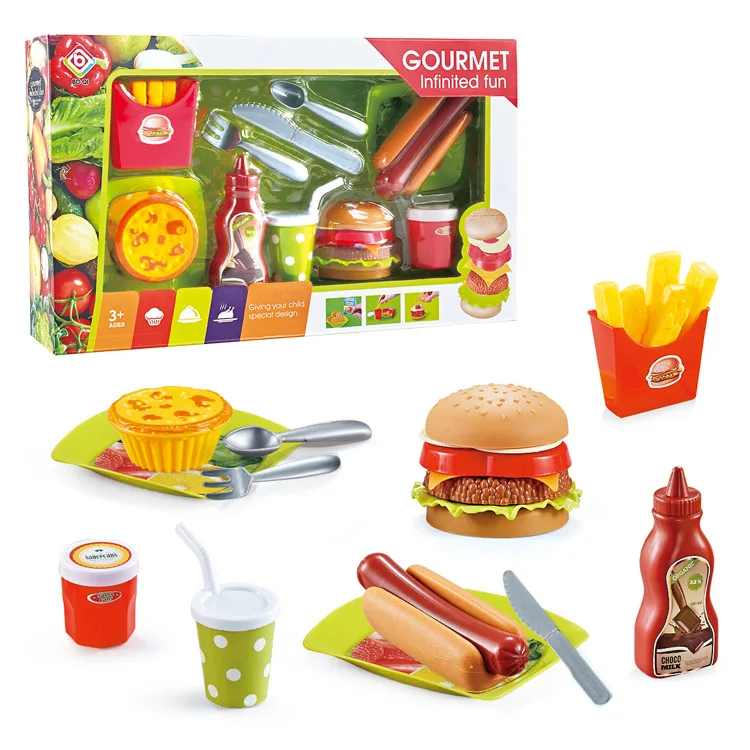 Best Seller Children'S Educational Play House Play kitchens Gourmet Simulated Burger French Fries Hot Dog Bever
