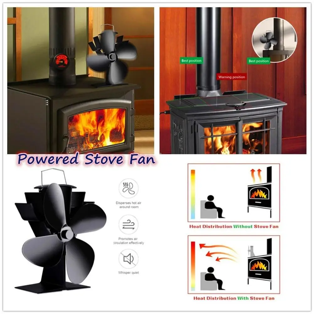 HIGH QUALITY Stove Thermometer 4 Blades Heat Powered Wood Stove Fireplace Fan Eco-Friendly Log Burner Winter War