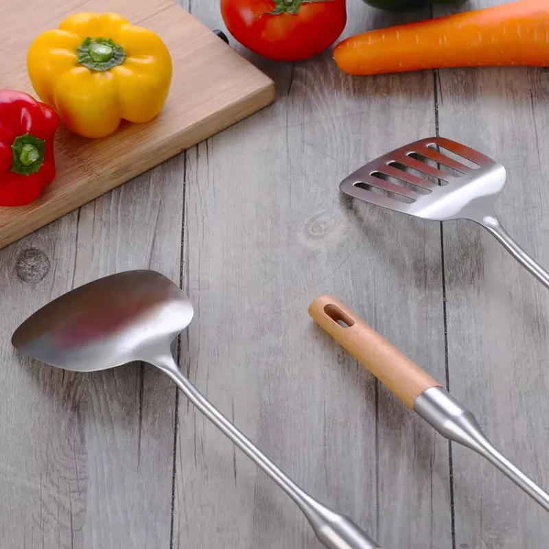 Best Xiaomi Yiwuyishi Turner Spoon Spatula Mixing Kitchen Tools Stainless Steel Material with Beech Wood