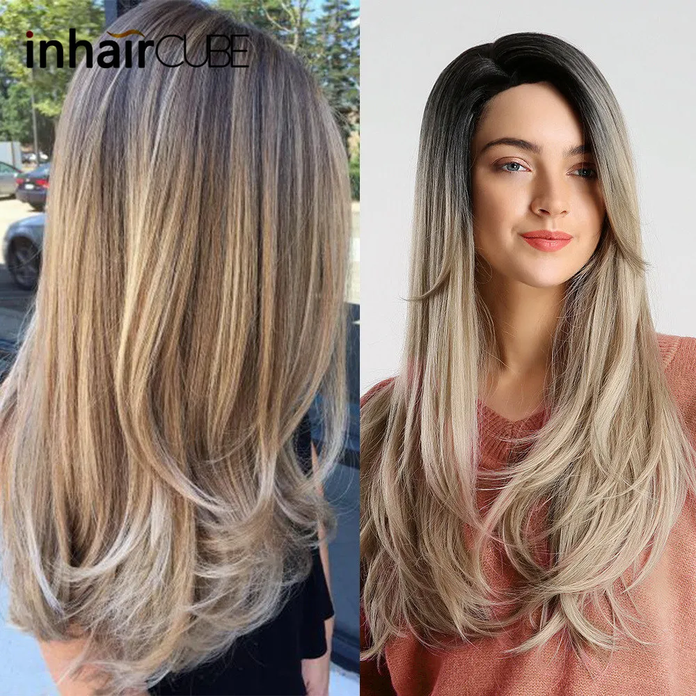 ORIGINAL Inhair Cube 24" Charming Fluffy Ombre Long Wavy hair Synthetic wigs Side part Heat Resistant Wig fo