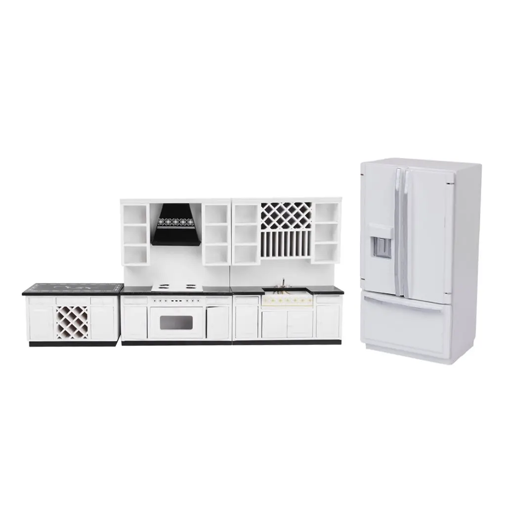 1:12 Scale Dollhouse Furniture Wooden Miniature Kitchen Cabinet Fridge Doll House Accessories Toys