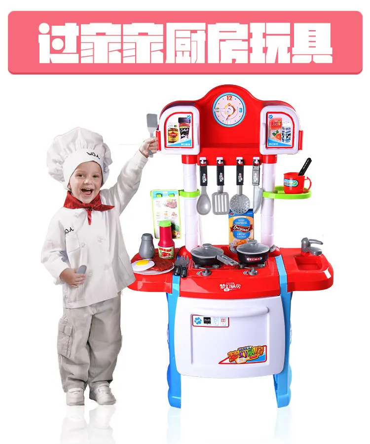 TOP Children Model Play House Kitchen Toy Tableware Set with Light And Music Clock Children'S Education