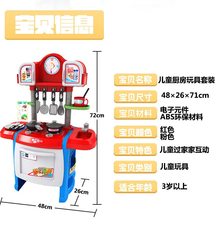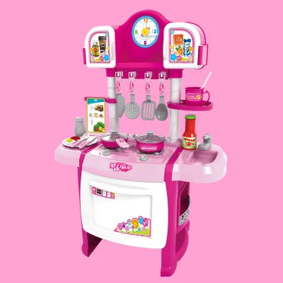 Children Model Play House Kitchen Toy Tableware Set with Light And Music Clock Children'S Education